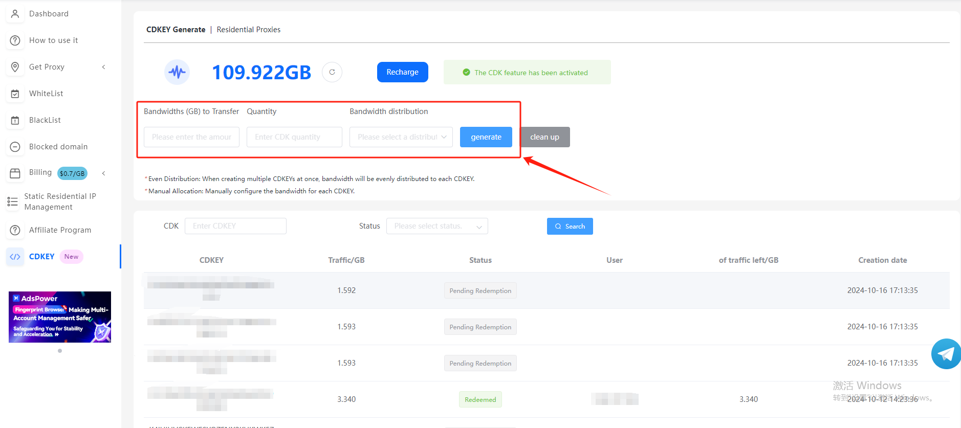 CDKEY est un service de clés secrètes fourni par Swiftproxy pour les utilisateurs. Les utilisateurs peuvent créer et activer des CDKEY via le Centre Utilisateur. 👉 Ouvrir CDKEY