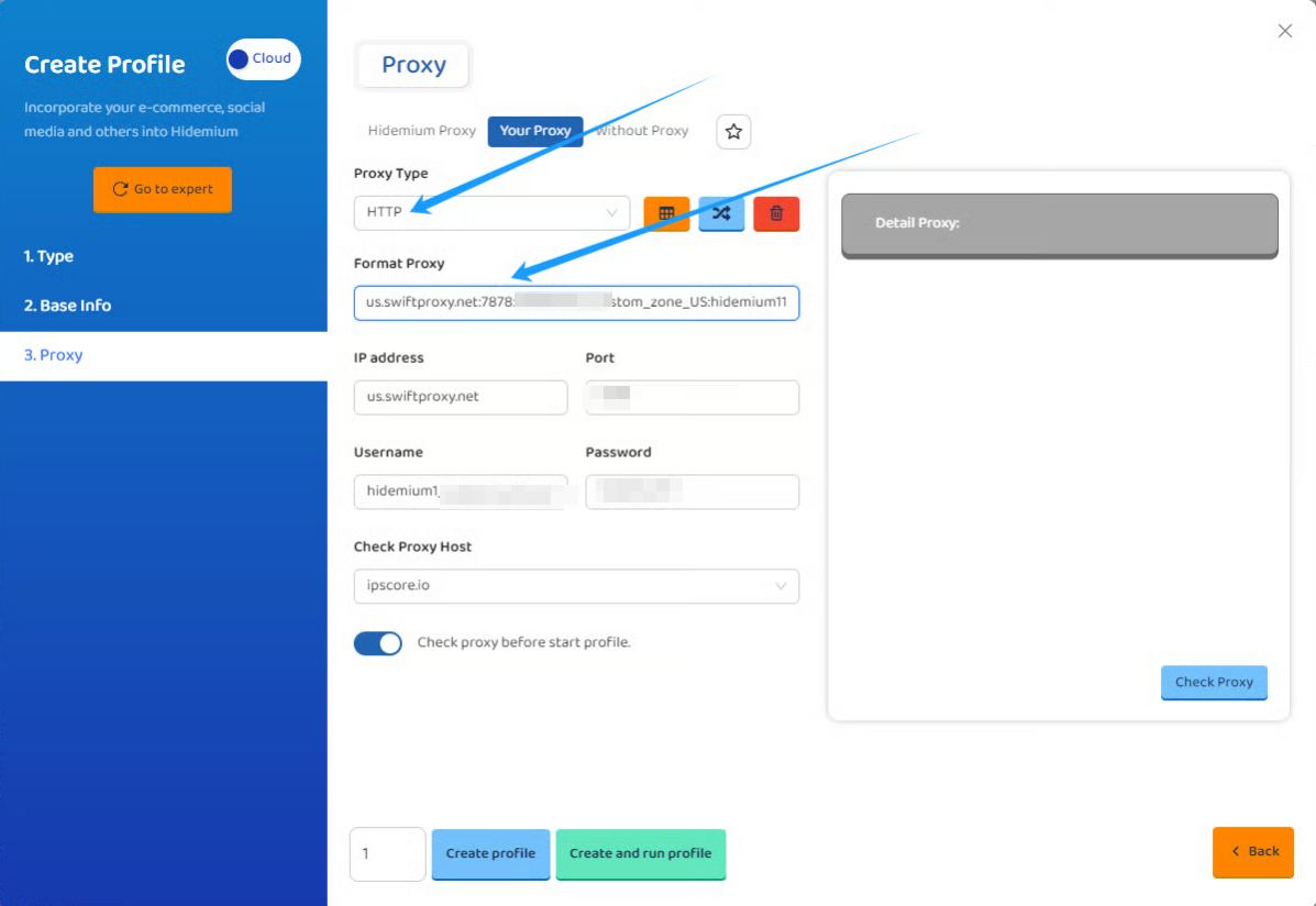 Step 2: Configurer Swiftproxy dans le navigateur Hidemium