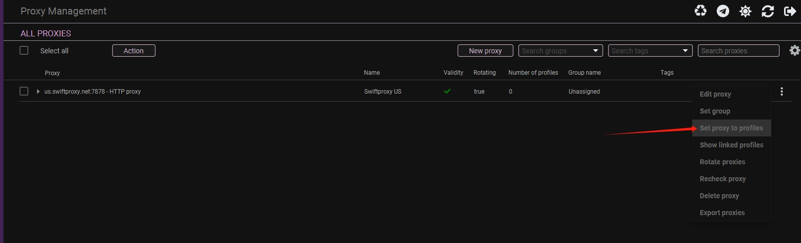 Set proxy to browser profiles