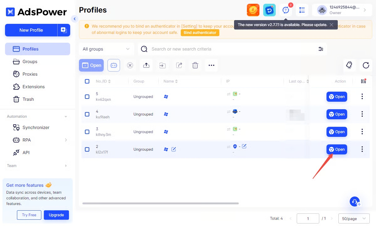 Connectez-vous à AdsPower et cliquez sur "New Profile".