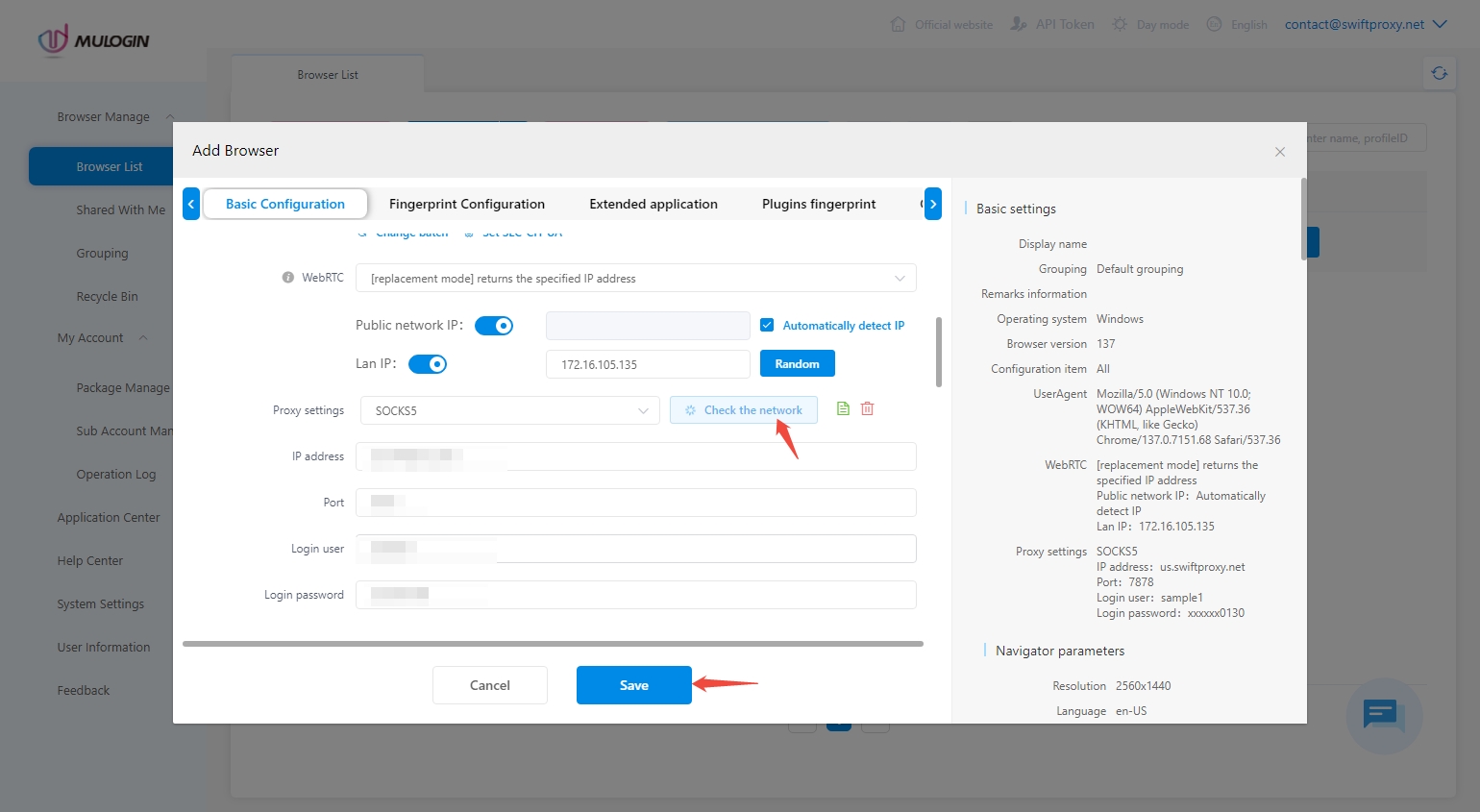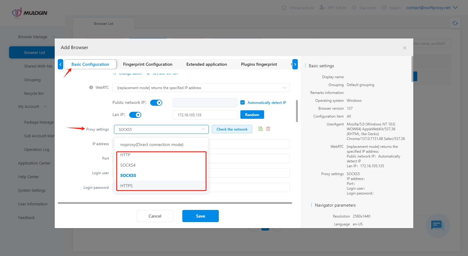 Step 2: Configurer Swiftproxy dans le navigateur MuLogin