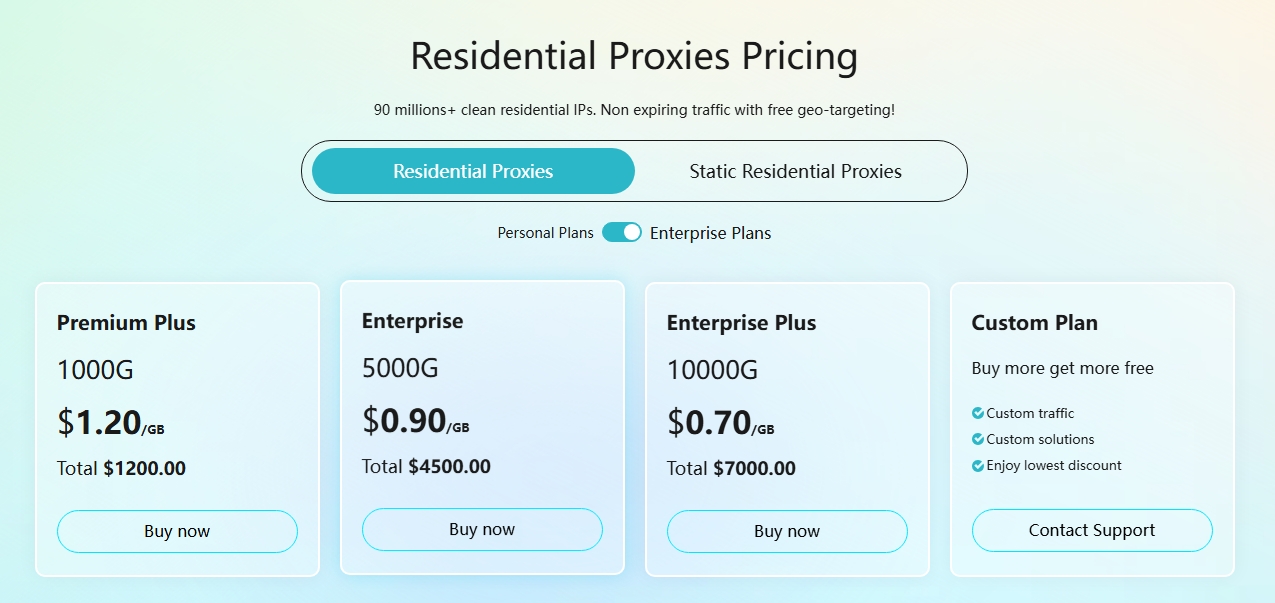 Swiftproxy propose trois forfaits résidentiels flexibles adaptés à différents volumes de trafic et besoins professionnels, allant des particuliers aux grandes entreprises.
