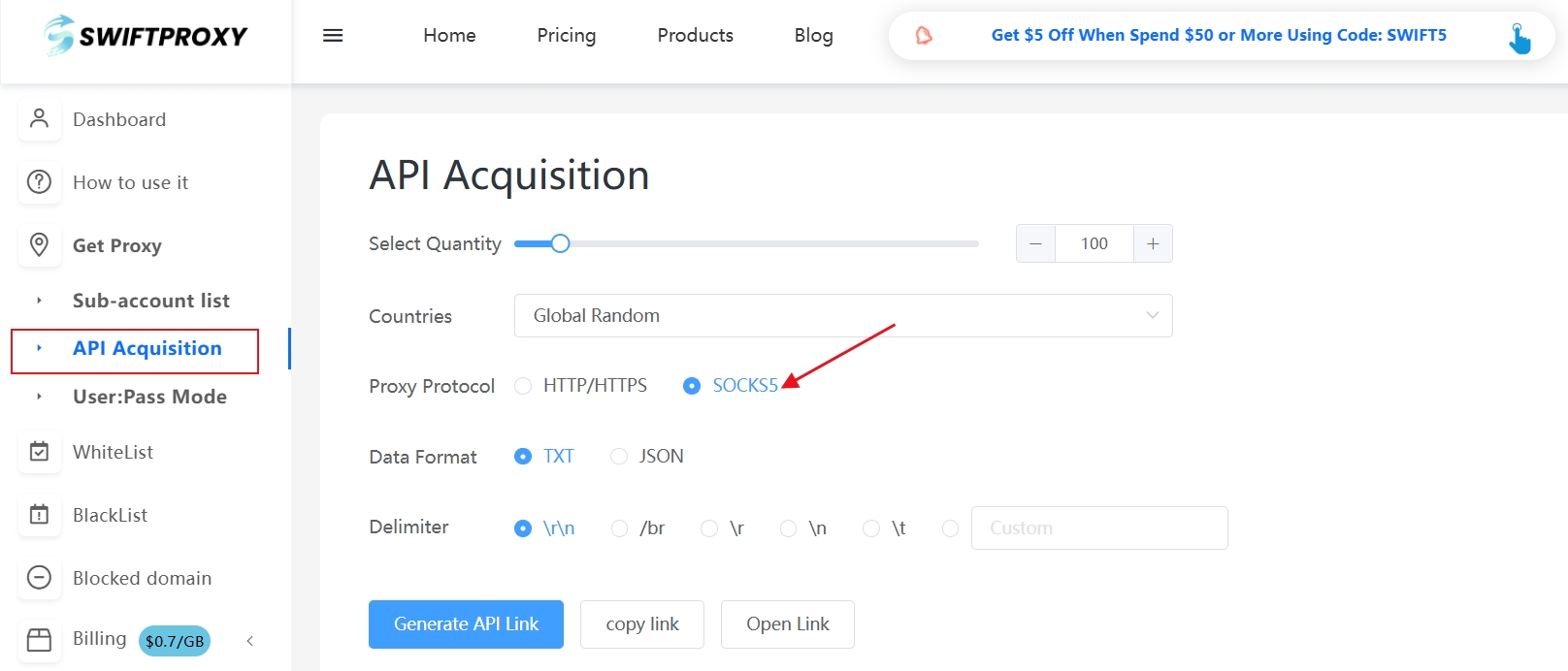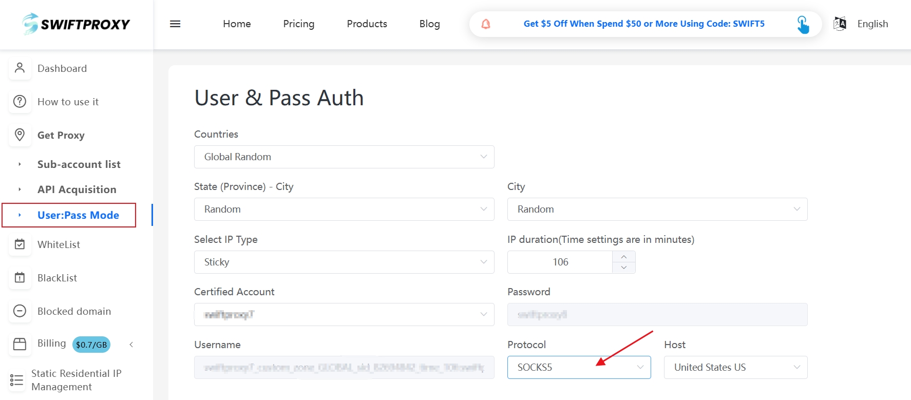 Voici un guide détaillé sur la configuration d’un proxy SOCKS5 avec Swiftproxy :