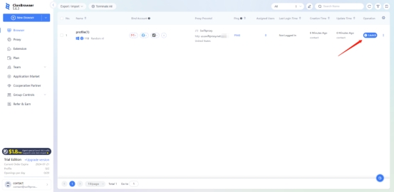 Tap "Launch" to start browsing using Swiftproxy’s residential proxy service via ClonBrowser.