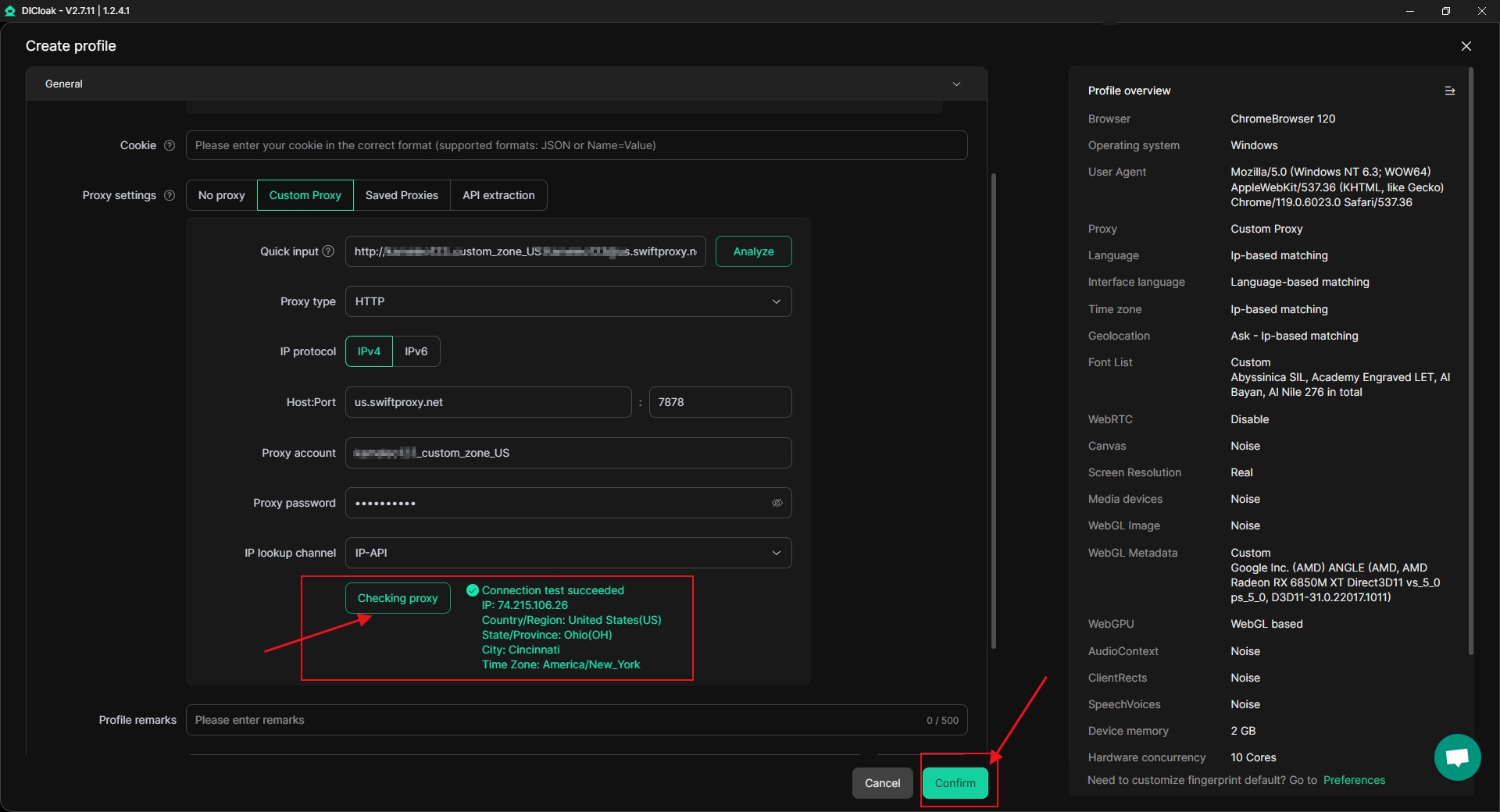 Step 2: Configure Swiftproxy in DICloak Browser