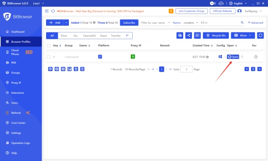 Log in to Bitbrowser, and you can start using BitBrowser's free plan, which is limited to one user and ten browser profiles.