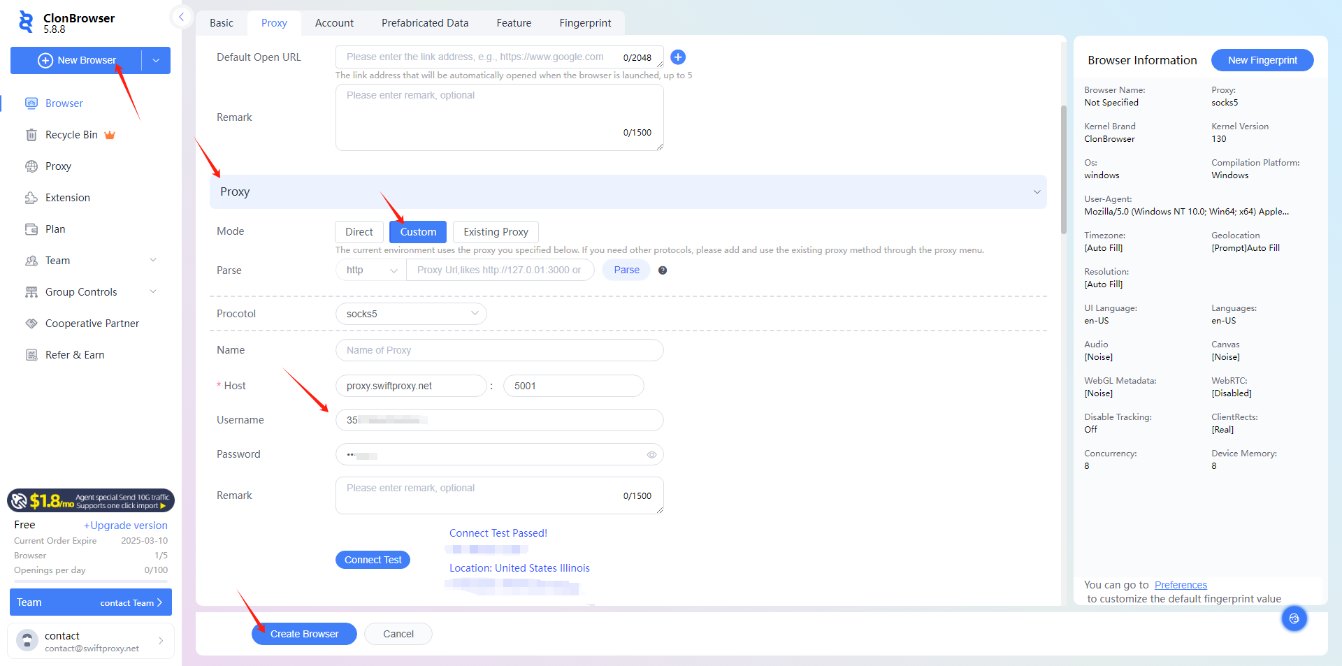 How to configure ClonBrowser with Swiftproxy Static Residential Proxy?