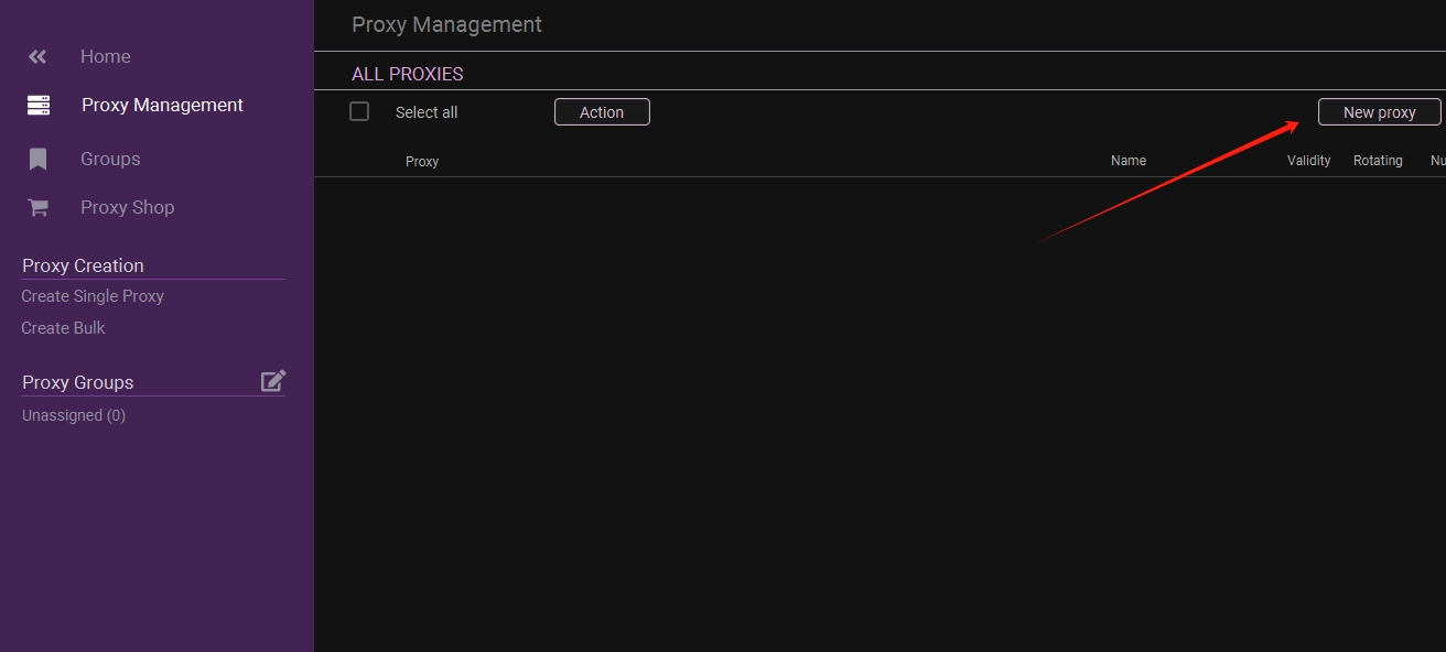 Once logged in, select "Proxy Management" from the sidebar: