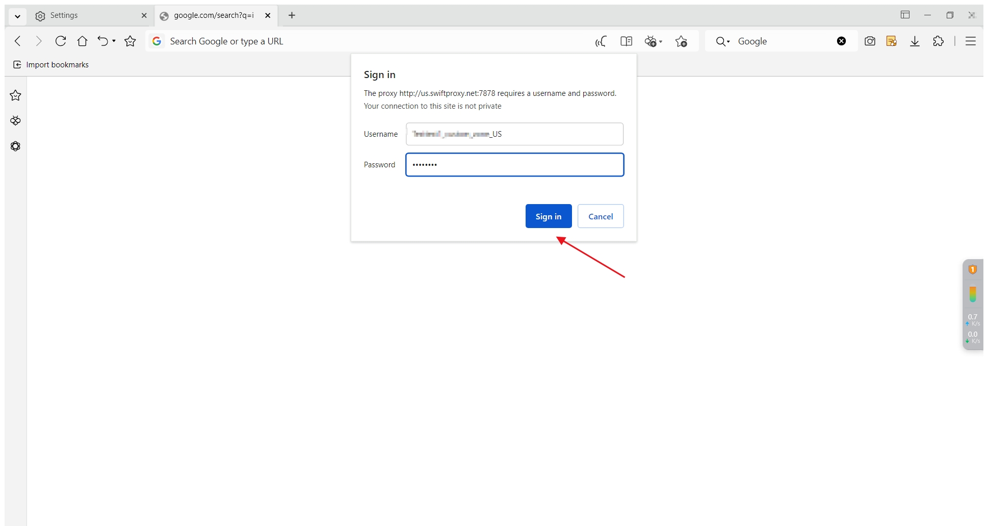 Next, when you open a new page, a proxy username and password login reminder will pop up. Fill in the corresponding information in sequence and click "Sign in".
